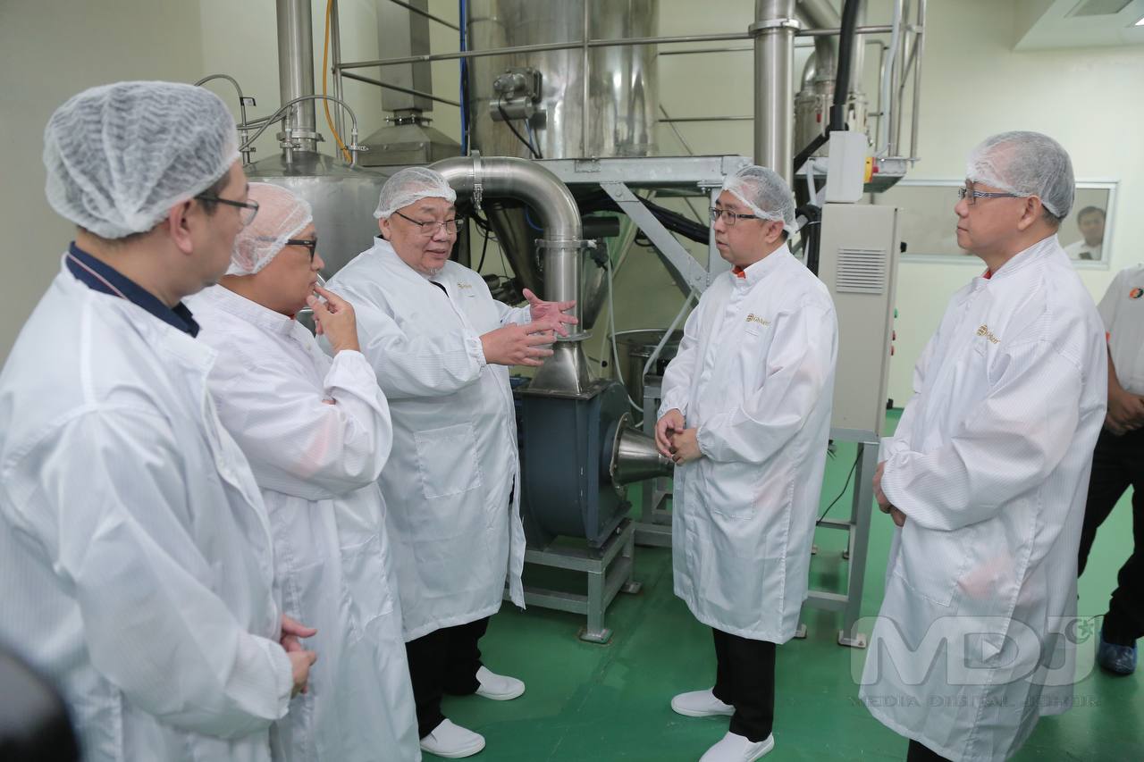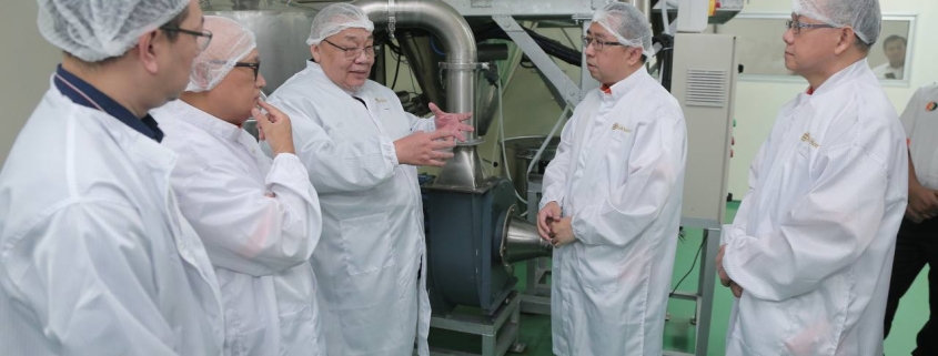 YB Tuan Chang Lih Kang, Menteri Sains, Teknologi dan Inovasi (dua dari kanan) mendengar taklimat ringkas oleh (tiga dari kiri) Tuan Eric Shak, Ketua Pegawai Eksekutif, Glyken International Berhad semasa lawatan ke makmal di pusat kemudahan bioteknologi Glyken di Iskandar Puteri.