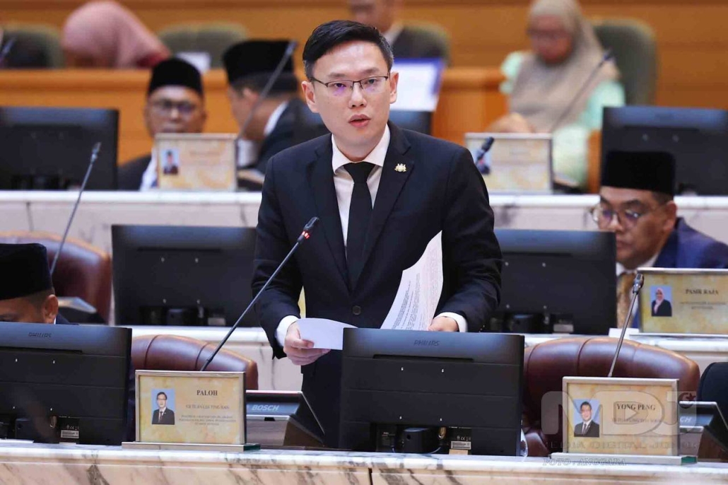 Terdahulu, YB Lee Ting Han, Pengerusi Jawatankuasa Pelaburan, Perdagangan, Hal Ehwal Pengguna dan Sumber Manusia Negeri Johor menjawab soalan Ahli Dewan Negeri kawasan Pemanis dalam sesi soal jawab lisan pada Mesyuarat Kedua Penggal Persidangan Ketiga Dewan Negeri Johor Ke-15, di Bangunan Sultan Ismail, Kota Iskandar, hari ini.