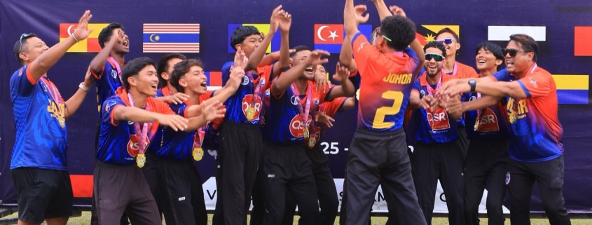Johor juara Kejohanan Kriket Lelaki Bawah 19 Tahun (B-19) Antara Negeri Persatuan Kriket Malaysia (MCA) 2025 setelah menewaskan Negeri Sembilan dalam perlawanan akhir. | Foto Persatuan Kriket Johor (JCA)