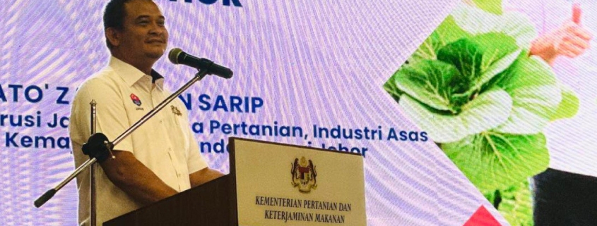 Pengerusi Jawatankuasa Pertanian, Industri Asas Tani dan Kemajuan Luar Bandar Negeri Johor, Dato’ Zahari Sarip berucap pada Seminar Pelaburan Subsektor Tanaman Agromakanan Malaysia di Kementerian Pertanian dan Keterjaminan Makanan di Putrajaya, semalam | Foto Ihsan, FB Dato’ Zahari Sarip.