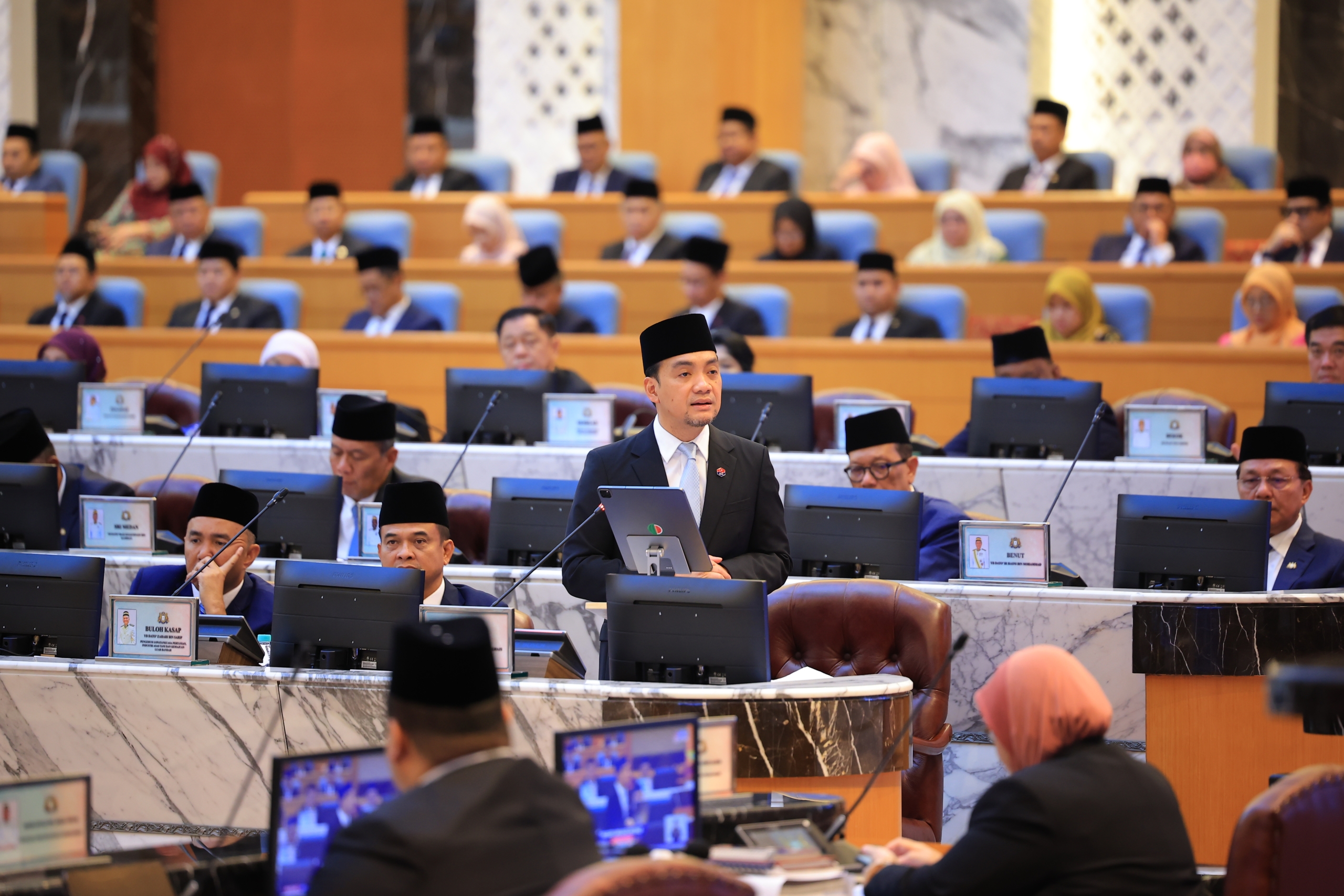 Terdahulu, YAB Dato’ Onn Hafiz Ghazi, Menteri Besar Johor membentangkan Belanjawan Johor 2026 bertemakan ‘Bangsa Johor Sejahtera’ pada Mesyuarat Ketiga (Belanjawan 2026) bagi Penggal Persidangan Keempat Dewan Negeri Johor Ke-15 di Bangunan Sultan Ismail, Kota Iskandar, hari ini.