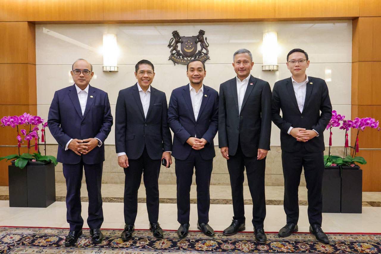 Menteri Besar Johor, Datuk Onn Hafiz Ghazi mengadakan perbincangan bersama Menteri Ehwal Luar Singapura, Dr. Vivian Balakrishnan serta Menteri di Jabatan Perdana Menteri merangkap Menteri Kedua Ehwal Luar Singapura, Dr. Mohamad Maliki Osman | Sumber gambar Facebook Onn Hafiz Ghazi.