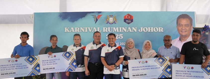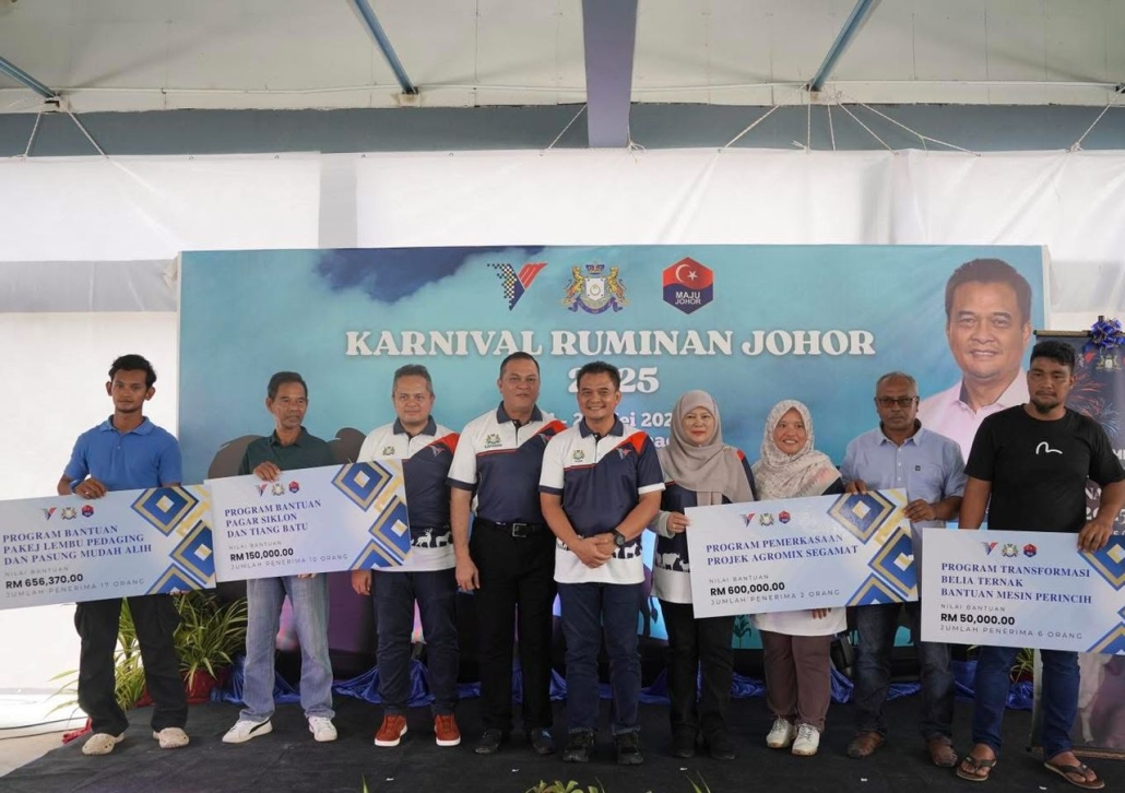 Pada masa sama, Johor memperkukuh sokongan kepada penternak menerusi pemberian insentif berjumlah RM1.45 juta diagihkan melalui empat program utama iaitu bantuan lembu pedaging dan pasung mudah alih, pembinaan pagar siklon, pemerkasaan Projek Agromix serta bantuan mesin perincih yang memanfaatkan seramai 35 penternak tempatan.