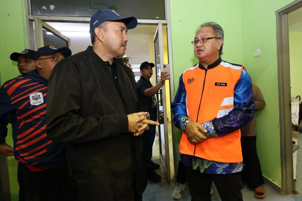 YB Dato’ Mohd Jafni Md Shukor, Pengerusi Jawatankuasa Perumahan dan Kerajaan Tempatan Negeri Johor ketika mengadakan lawatan ke salah satu Pusat Pemindahan Sementara (PPS) beroperasi di Kulai. | Foto Mohd Jafni Md Shukor