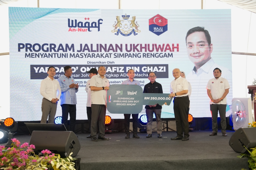 #IskandarPuteri – Johor Plantations Group Berhad (JPG) menerusi inisiatif tanggungjawab sosial korporatnya (CSR) iaitu #JPGBerkat telah menyumbang RM250,000 kepada Waqaf An-Nur Corporation Berhad bagi tujuan pembelian bot penyelamat bencana dan ambulans.