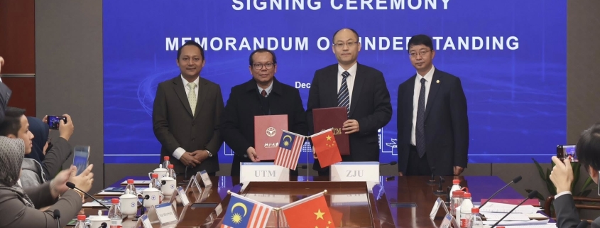MoU ini memfokuskan penubuhan Makmal Bersama Kecerdasan Buatan atau Joint Laboratory for Artificial Intelligence (JL-AI) antara Fakulti Kecerdasan Buatan UTM dan Kolej Sains Maklumat dan Kejuruteraan Elektronik, Universiti Zhejiang. | Foto FB Aznan Tamin