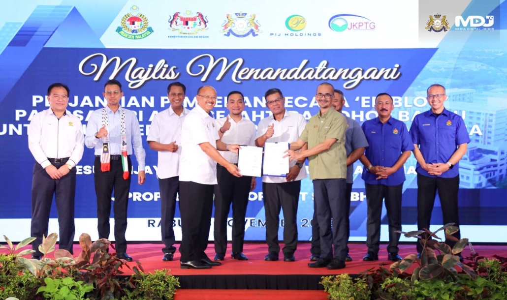 Hadir menyaksikan majlis menandatangani perjanjian tersebut adalah Menteri Besar, Datuk Onn Hafiz Ghazi; Menteri Dalam Negeri, Senator Datuk Seri Saifuddin Nasution Ismail dan Setiausaha Kerajaan Johor, Tan Sri Dato’ Dr. Azmi Rohani.