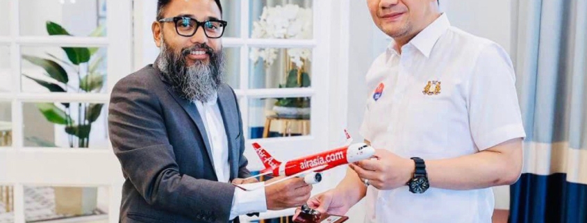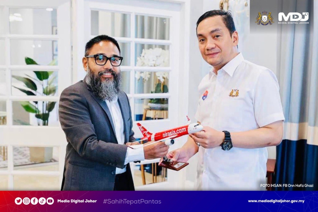 Menteri Besar Johor, Datuk Onn Hafiz Ghazi bersama Ketua Pegawai Eksekutif AirAsia Berhad, Riad Asmat. | Foto ihsan Facebook Onn Hafiz Ghazi