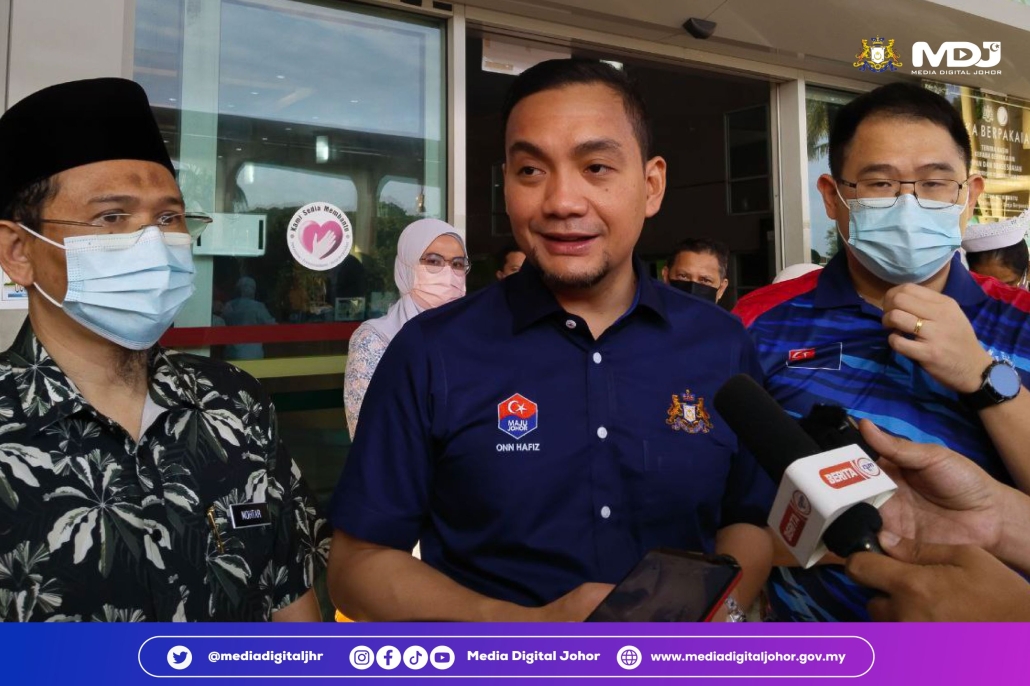 Menteri Besar Johor, Datuk Onn Hafiz Ghazi ketika bercakap kepada pemberita selepas mengadakan lawatan ke Hospital Sultan Ismail (HSI), pada Jumaat. | Foto MDJ