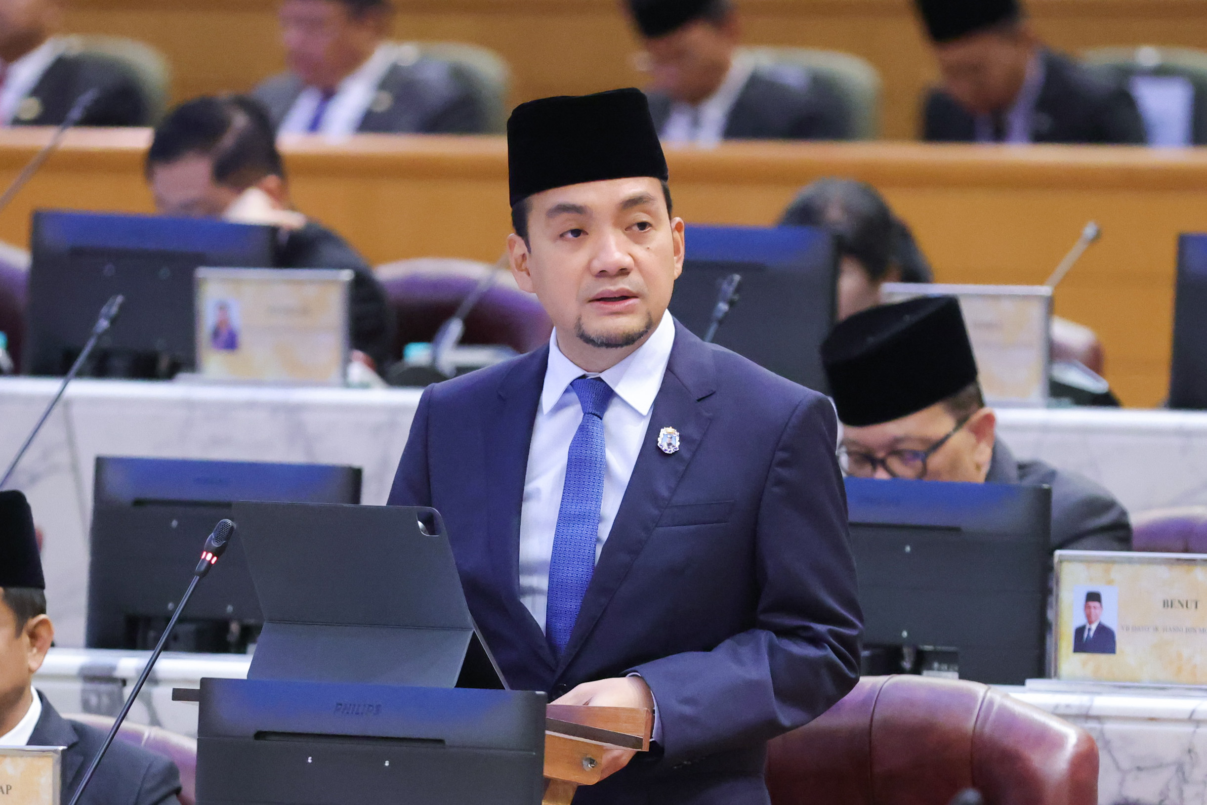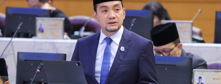 Menteri Besar Johor, Datuk Onn Hafiz Ghazi membawa cadangan kerajaan negeri untuk membentuk sebuah jawatankuasa dibarisi Ahli-Ahli Dewan Negeri merentasi parti politik bagi menangani isu perubahan iklim di Dewan Negeri Johor, hari ini | Sumber foto MedKom.