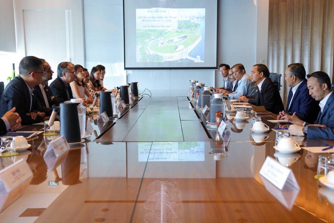 Menteri Besar Johor, Datuk Onn Hafiz Ghazi bersama delegasi kerajaan negeri berpeluang mendengar taklimat oleh Lembaga Utiliti Awam (PUB) Singapura dalam lawatan kerja rasmi di negara jiran | Sumber gambar Facebook Onn Hafiz Ghazi.