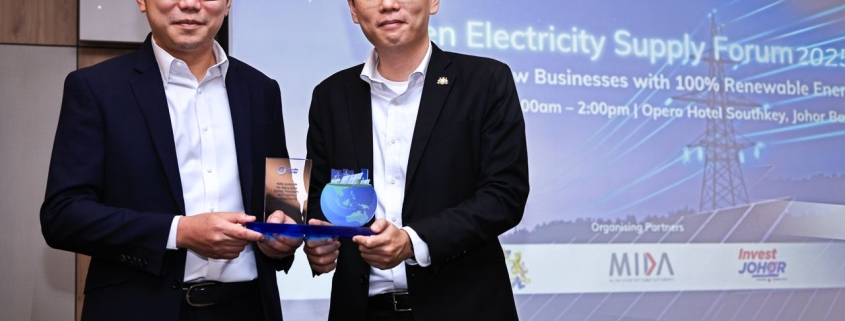 Terdahulu, YB Tuan Lee Ting Han, Pengerusi Jawatankuasa Pelaburan, Perdagangan, Hal Ehwal Pengguna dan Sumber Manusia Negeri Johor menyempurnakan pelancaran Forum Bekalan Elektrik Hijau 2025 di Opero Hotel Southkey, hari ini.