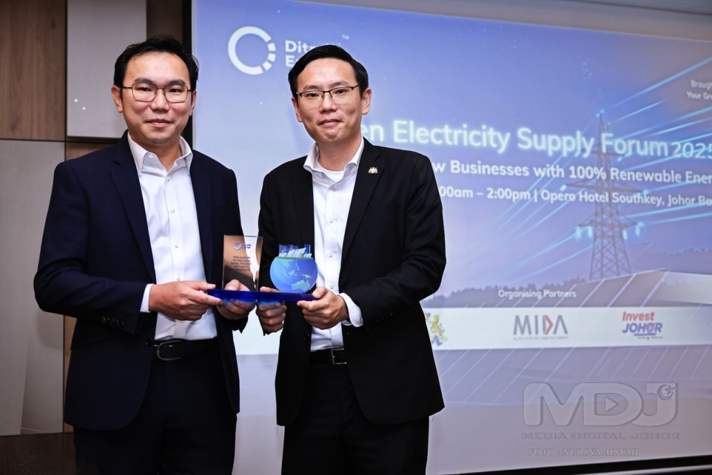 Terdahulu, YB Tuan Lee Ting Han, Pengerusi Jawatankuasa Pelaburan, Perdagangan, Hal Ehwal Pengguna dan Sumber Manusia Negeri Johor menyempurnakan pelancaran Forum Bekalan Elektrik Hijau 2025 di Opero Hotel Southkey, hari ini.