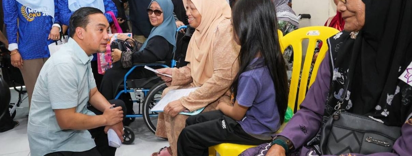 YAB Dato’ Onn Hafiz Ghazi, Menteri Besar Johor yang juga Ahli Dewan Negeri Johor Kawasan Machap menyantuni penerima sumbangan BKJ di DUN Machap. | Foto MDJ Aisyah Mazalan
