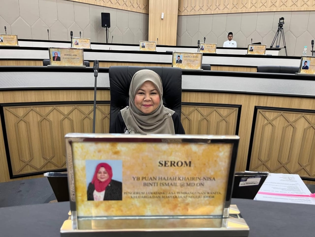 YB Khairin-Nisa Ismail, Pengerusi Jawatankuasa Pembangunan Wanita, Keluarga dan Masyarakat Negeri Johor pada Mesyuarat Kedua Bagi Penggal Persidangan Keempat Dewan Negeri Johor Yang Ke-15 di Dewan Persidangan Bangunan Temenggong Ibrahim, Majlis Bandaraya Iskandar Puteri (MBIP). | Foto FB Khairin Nisa Ismail