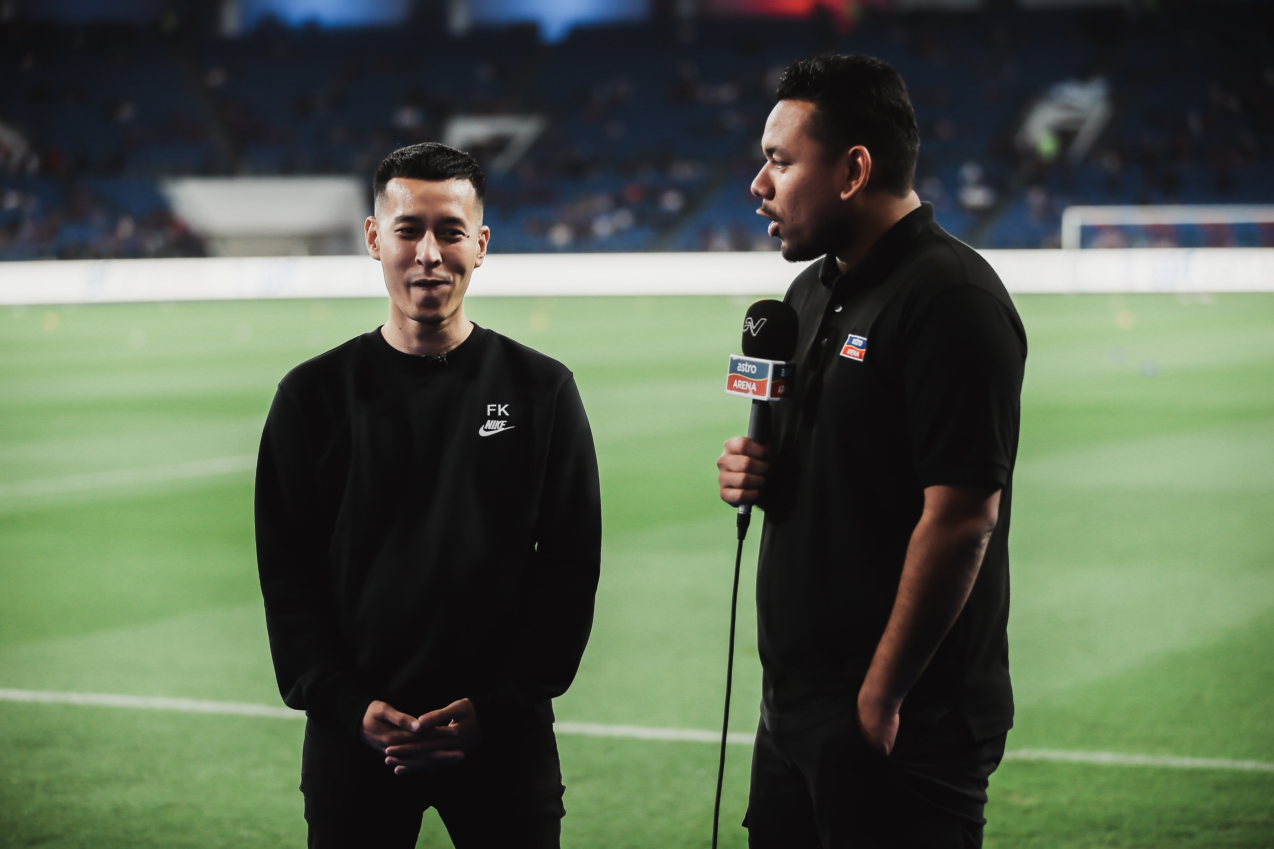 Farhan Khair (kiri) yang lebih mesra dikenali sebagai ‘FK’ sering tampil di program televisyen bagi memberi ulasan berkaitan sukan bolasepak. | Foto Ihsan Farhan Khair.