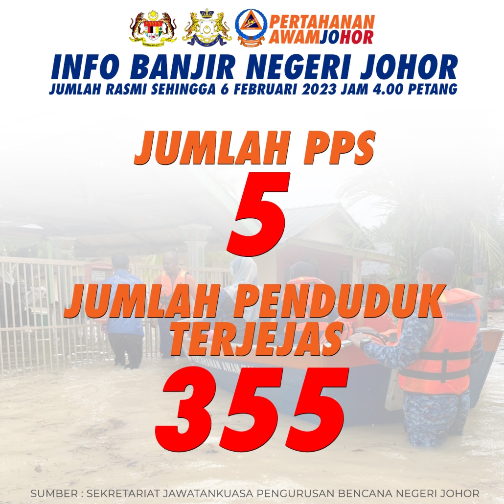 Kesemua mangsa masih mendapatkan perlindungan dan ditempatkan di lima Pusat Pemindahan Sementara (PPS) yang dibuka di Batu Pahat dan Segamat.