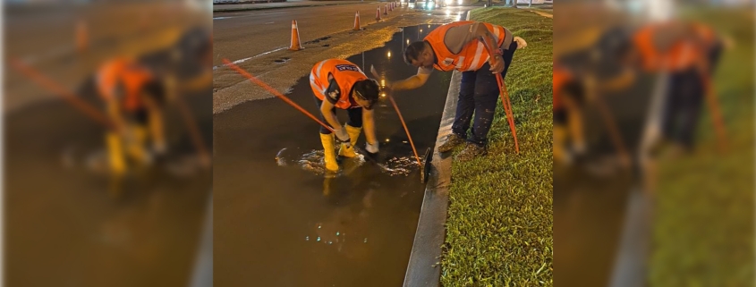 Petugas Majlis Bandaraya Johor Bahru (MBJB) membersihkan longkang tersumbat bagi melancarkan sistem saliran di kawasan pentadbirannya. | Foto ihsan Facebook Majlis Bandaraya Johor Bahru