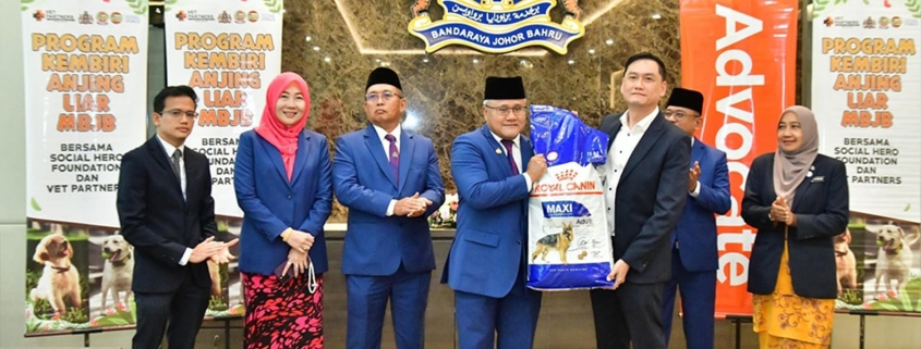 YB Dato’ Mohd Noorazam Osman, Datuk Bandar MBJB (tengah) menerima tajaan dan sumbangan bagi Program Kembiri Anjing Liar MBJB. | Foto Majlis Bandaraya Johor Bahru