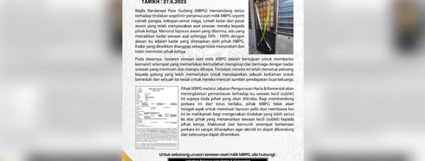 MBPG PANDANG SERIUS ISU PENYEWA ‘SUBLET’ ASET