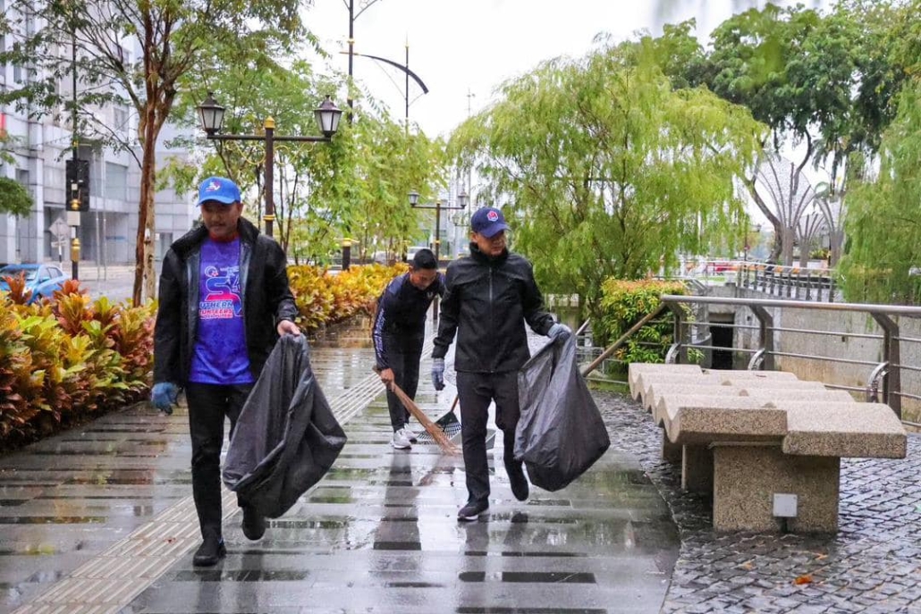 Menteri Besar Johor, Datuk Onn Hafiz Ghazi bersama EXCO Kerajaan Johor, MBJB dan masyarakat setempat melakukan aktiviti gotong royong di sekitar Dataran Segget, Johor Bahru, semalam | Sumber gambar Facebook Onn Hafiz Ghazi.