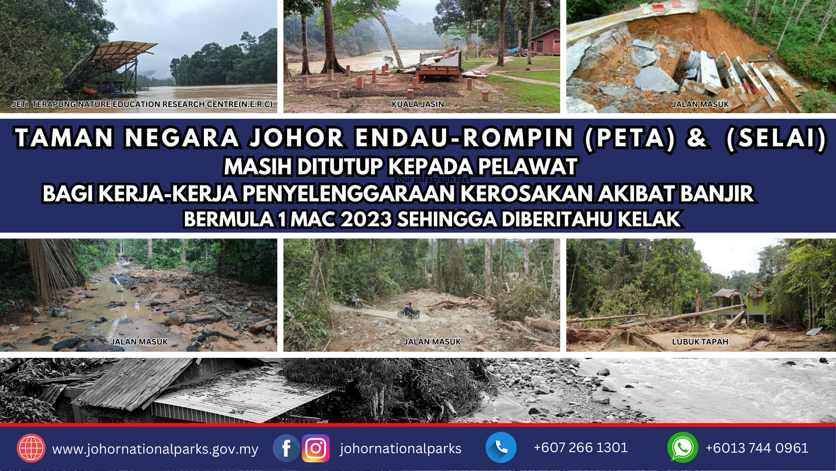 Untuk rekod, PTNJ pada awal Mac lalu mengeluarkan arahan penutupan operasi bagi Taman Negara Endau-Rompin (Peta dan Selai) berikutan cuaca hujan lebat yang melanda negeri ini yang turut menyebabkan banjir.