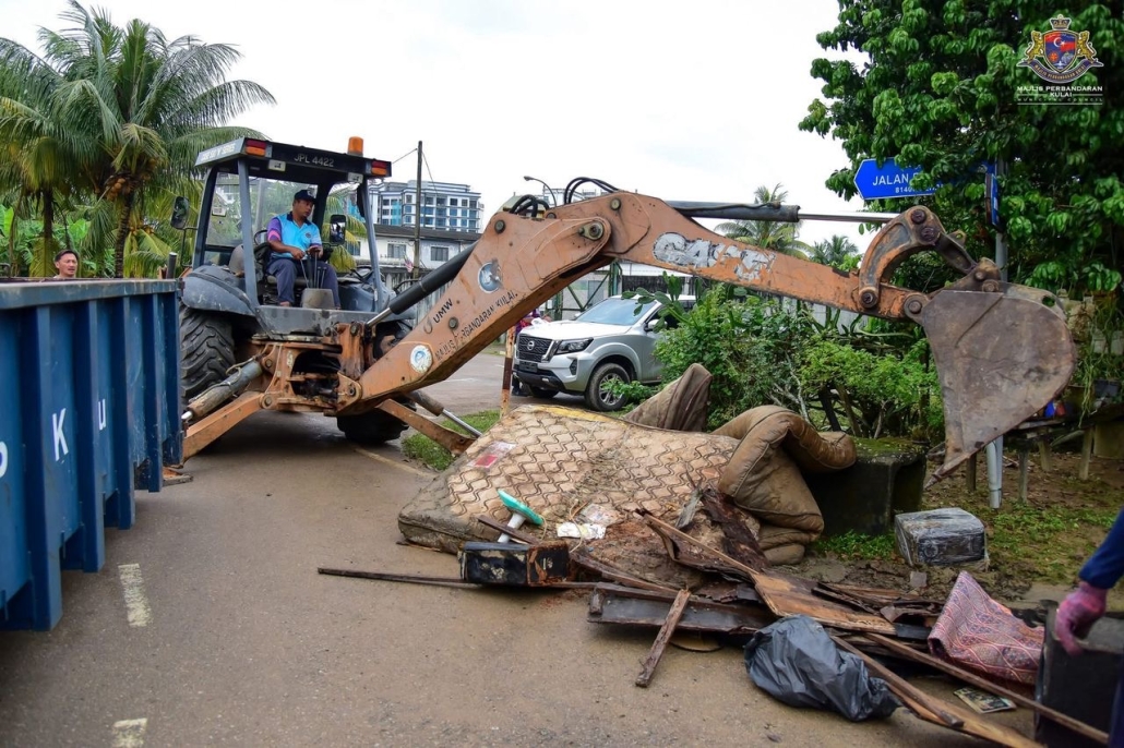 MPKu menerusi Southern Volunteers Response Team (SVRT) telah menggerakkan seramai 50 petugas dan sukarelawan bagi melaksanakan operasi pembersihan pasca banjir di beberapa lokasi terjejas. | Foto Majlis Perbandaran Kulai (MPKu)