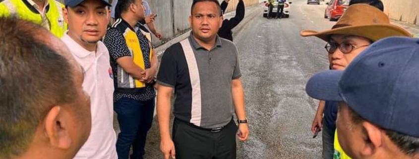Pengerusi Jawatankuasa Kerja Raya, Pengangkutan dan Infrastruktur Negeri Johor, Ir. Ts. Mohamad Fazli Mohamad Salleh mengarahkan agar kerja pembaikan jalan rosak Jalan Persekutuan FT001 Senai Underpass disegerakan | Sumber Foto Facebook Fazli Salleh.