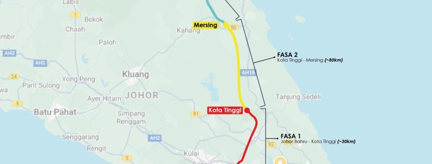 Projek ini melibatkan tiga jajaran utama iaitu Johor Bahru–Kota Tinggi, Kota Tinggi–Mersing dan Mersing–Endau dengan proses libat urus bersama Kementerian Kerja Raya (KKR) sedang dilaksanakan bagi memastikan pelaksanaannya mampu memberi manfaat optimum kepada pembangunan negeri dan kemudahan rakyat.