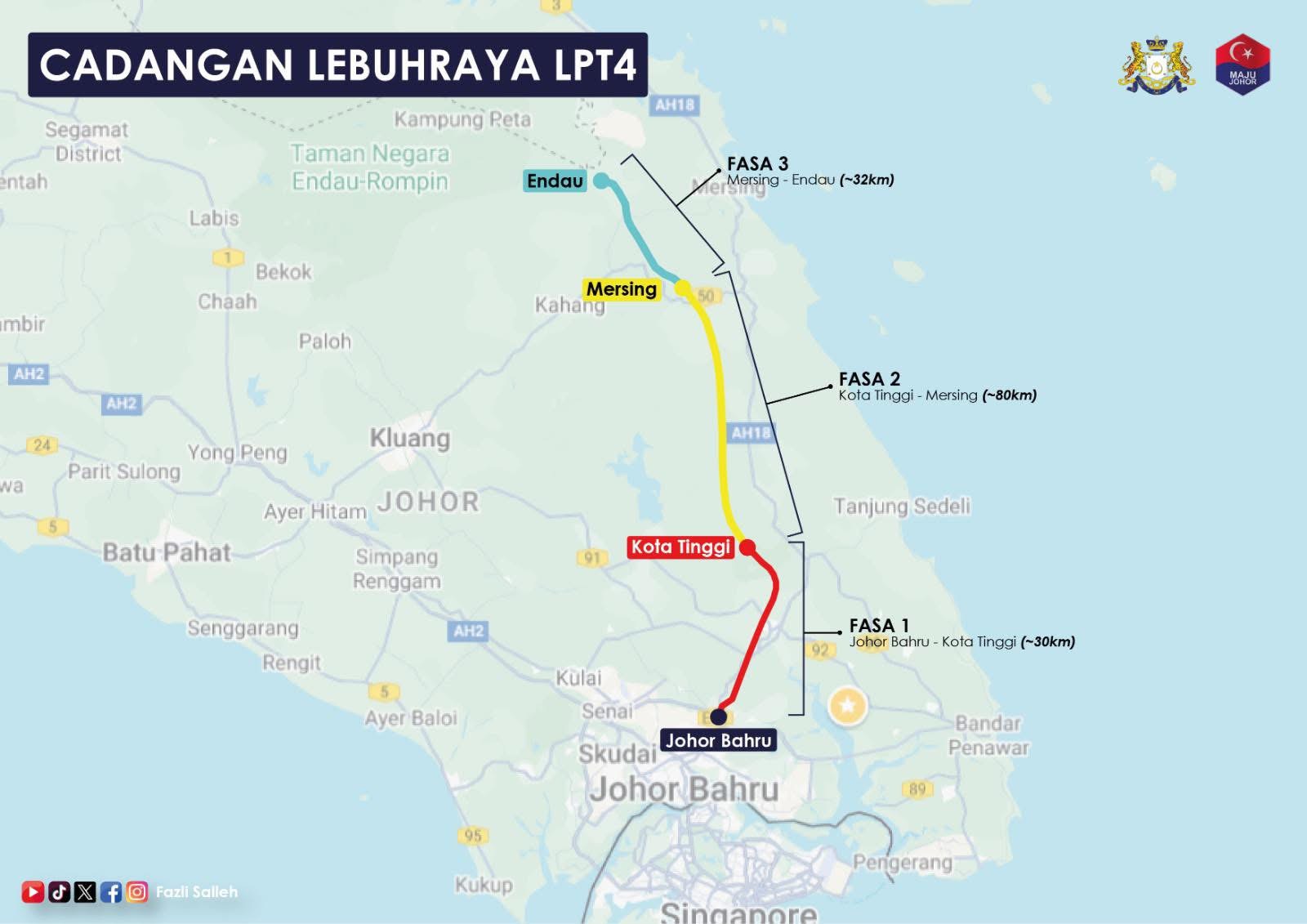 Cadangan pembinaan LPT4 yang sebelum ini disenaraikan dalam Pelan Pembangunan Rangkaian Jalan Raya (HNDP) untuk dilaksanakan selepas tahun 2030 itu kini diletakkan sebagai keutamaan perancangan negeri, selari dengan pembangunan semasa Johor serta keperluan mempercepat pembangunan di kawasan Pantai Timur.
