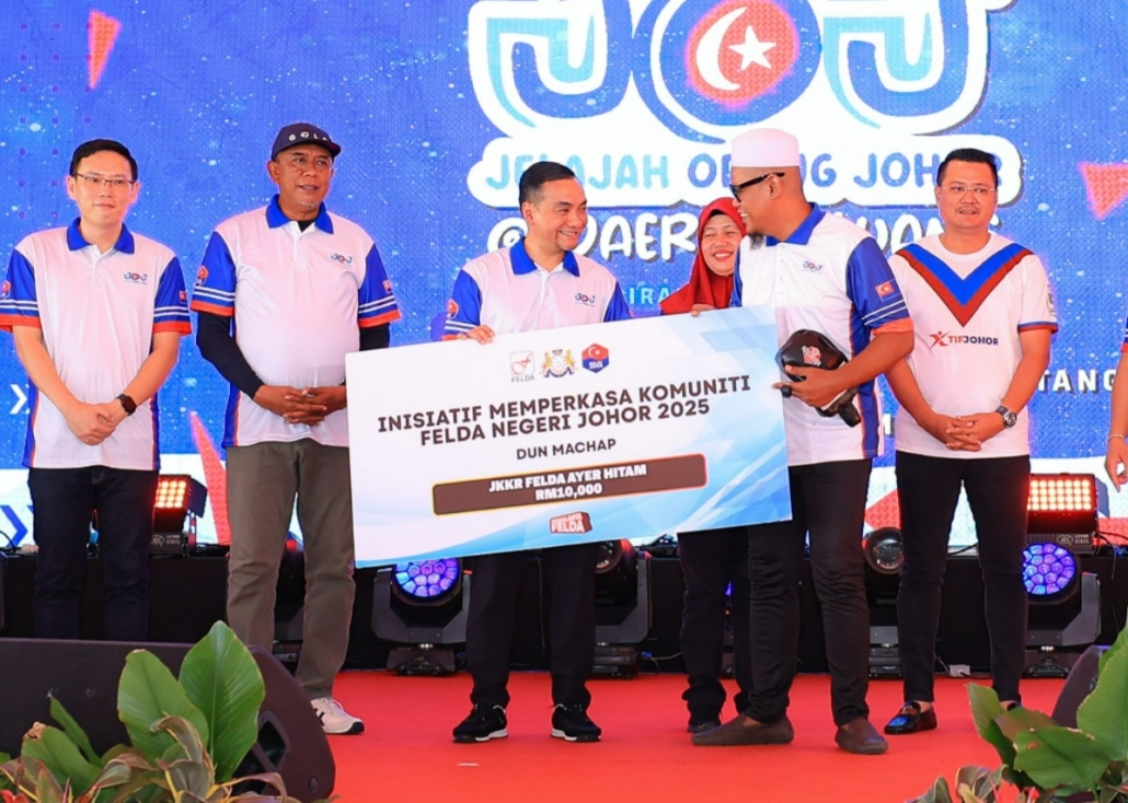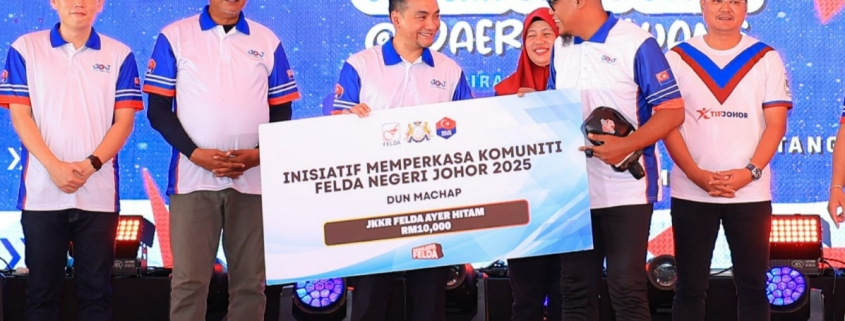 Terdahulu, YAB Dato’ Onn Hafiz Ghazi, Menteri Besar Johor menyempurnakan simbolik penyerahan inisiatif memperkasa komuniti FELDA Negeri Johor Tahun 2025 pada perasmian program Jelajah Orang Johor Daerah Kluang di Tunku Mahkota Ismail Youth Centre (TMIYC) Renggam, Kluang, baru-baru ini.