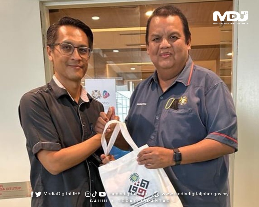 Timbalan Pengurus Besar PIJ, Khirul Nizam Mat Said dan disambut oleh Ketua Penolong Setiausaha (KPSU) ICT@Johor, Anwar Zamil Malham / Gambar Ihsan Perbadanan Islam Johor.