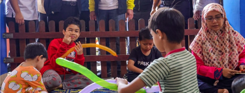 Perdana Menteri, Datuk Seri Anwar Ibrahim (tengah) menyantuni kanak-kanak mangsa banjir ketika melakukan Lawatan Kerja Ke Lokasi Banjir di daerah Segamat / Gambar MDJ