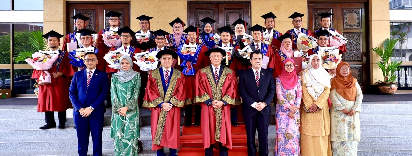 Terdahulu, YB Dato’ Haji Asman Shah Abd. Rahman, Setiausaha Kerajaan Negeri Johor hadir ke Majlis Konvokesyen UTMSPACE 2025 bagi Program Diploma Profesional Pascasiswazah Pengurusan Tanah Sesi 2024/2025 di Dewan Sultan Iskandar, UTM.