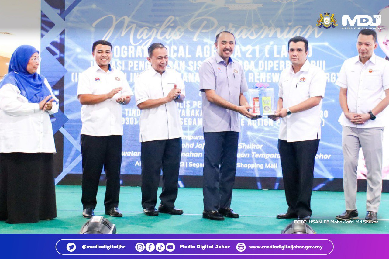 Program Local Agenda (LA) 21 Inovasi Pengurusan Sisa & Tenaga Diperbaharui telah disempurnakan oleh Pengerusi Jawatankuasa Perumahan dan Kerajaan Tempatan Negeri Johor, Dato’ Mohd Jafni Md Shukor di Segamat Central, baru-baru ini.