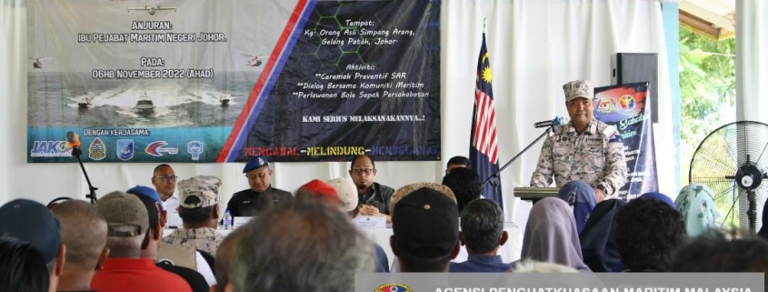 ISKANDAR PUTERI — Agensi Penguatkuasaan Maritim Malaysia (Maritim Malaysia) Negeri Johor mengadakan lawatan muhibbah bersama komuniti nelayan Orang Asli di Kampung Simpang Arang, Gelang Patah.