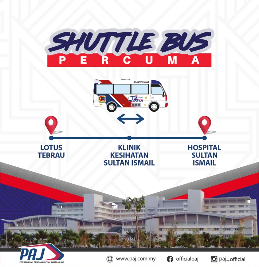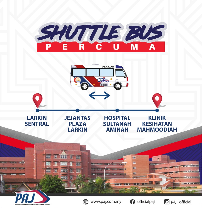 JOHOR BAHRU — Kerajaan negeri Johor menerusi Perbadanan Pengangkutan Awam Johor (PAJ) menyediakan kemudahan bas ulang-alik ke dua buah hospital utama di bandaraya ini bermula pada 30 Oktober dan 1 November ini.