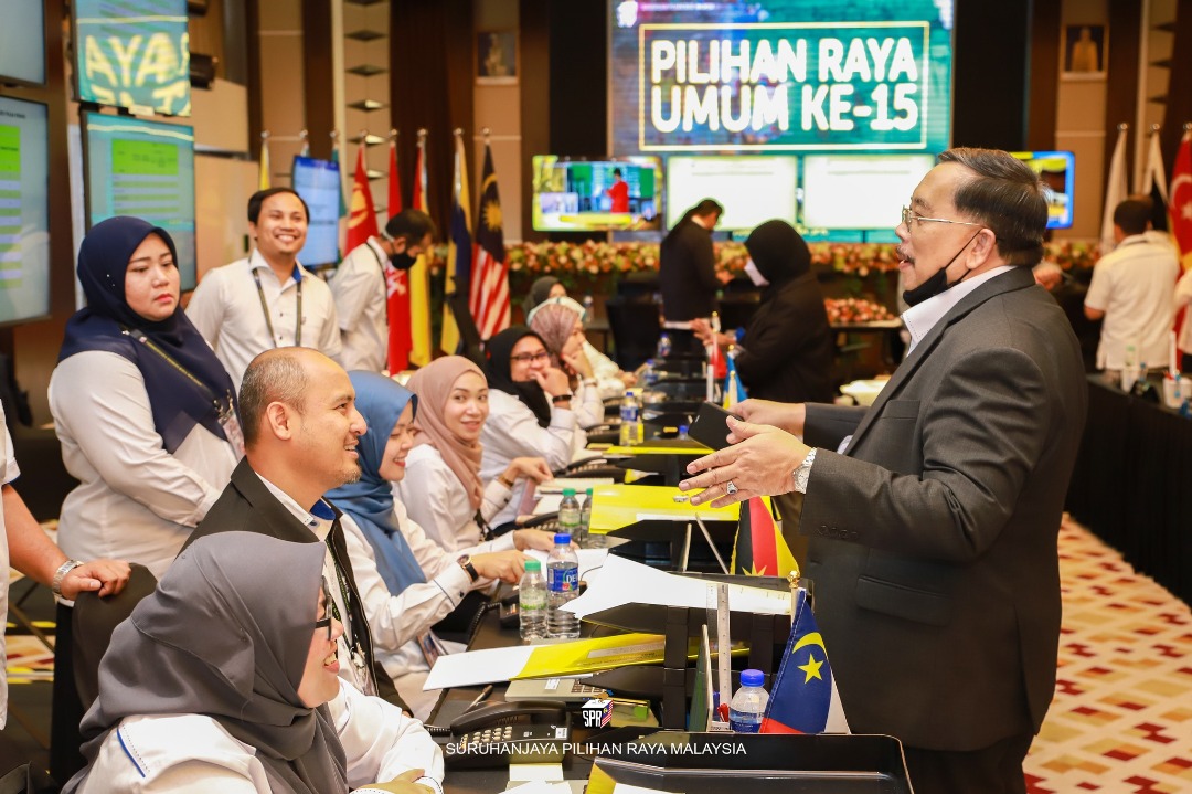 Pengerusi Suruhanjaya Pilihan Raya (SPR), Tan Sri Abdul Ghani Salleh meninjau proses penamaan calon Pilihan Raya Umum (PRU) 15 / Foto Ihsan SPR.