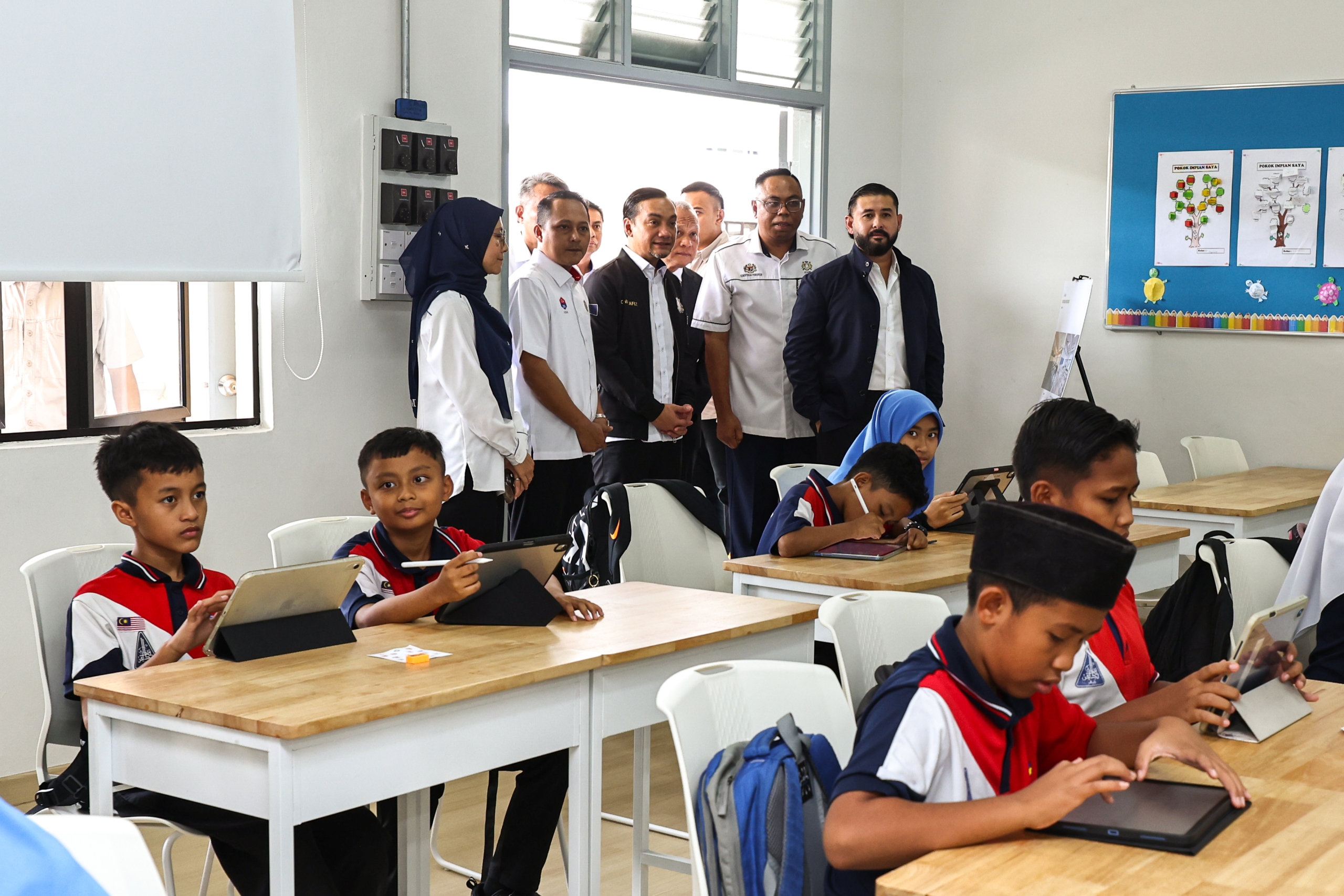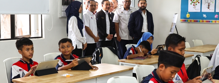 Duli Yang Amat Mulia Tunku Mahkota Ismail, Pemangku Sultan Johor berkenan berangkat ke salah sebuah Sekolah Rintis Bangsa Johor di SK Tasek Utara. | Foto MDJ Nurina Aisyah