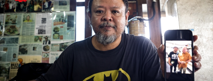 Pengusaha Warung Saga, Ahmad Ismail menunjukkan gambar kenangan beliau bersama DYMM Sultan Johor, Sultan Ibrahim Ibni Almarhum Sultan Iskandar. | Foto MDJ Nurina Aisyah.