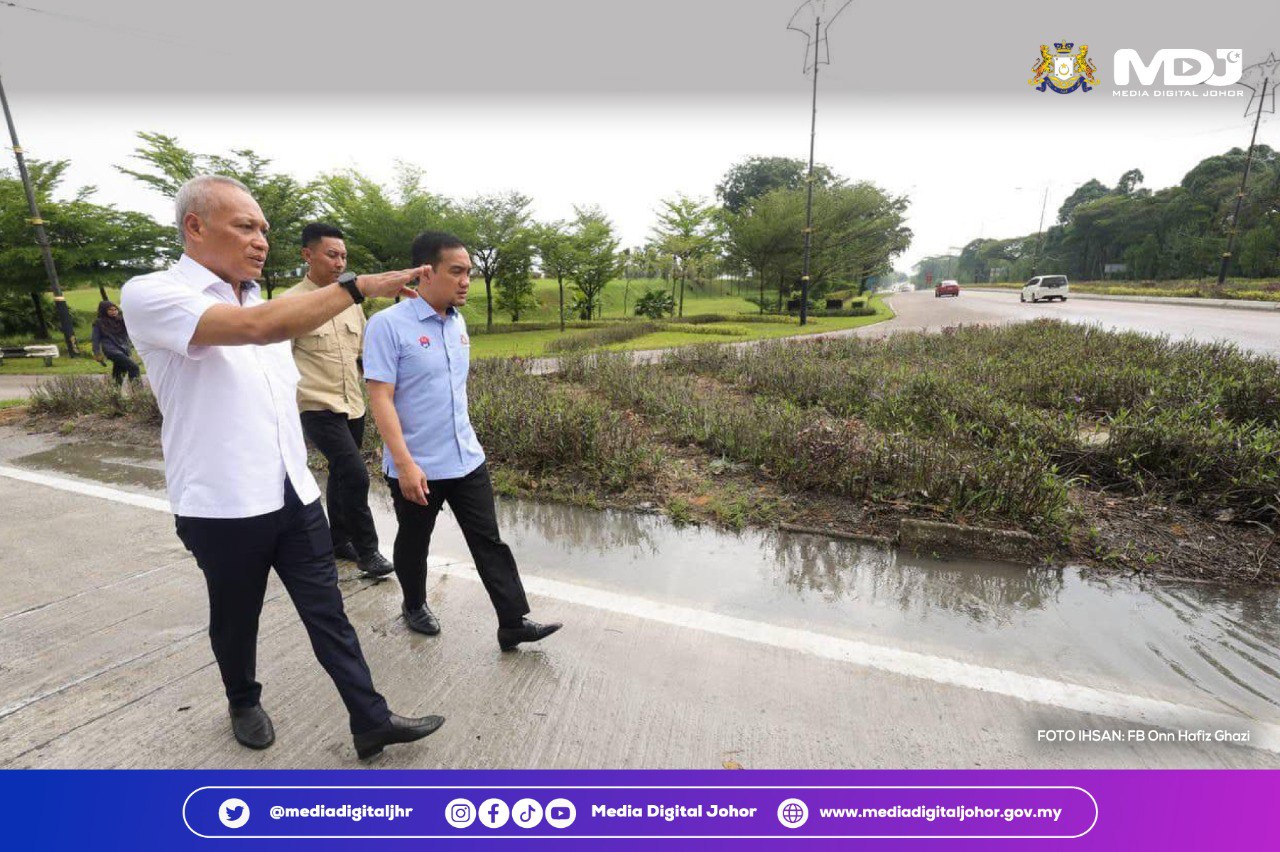 Terdahulu, Menteri Besar Johor ditemani Datuk Bandar Majlis Bandaraya Pasir Gudang (MBPG), Dato’ Asman Shah Abdul Rahman meninjau keadaan jalan di bawah Pihak Berkuasa Tempatan itu.