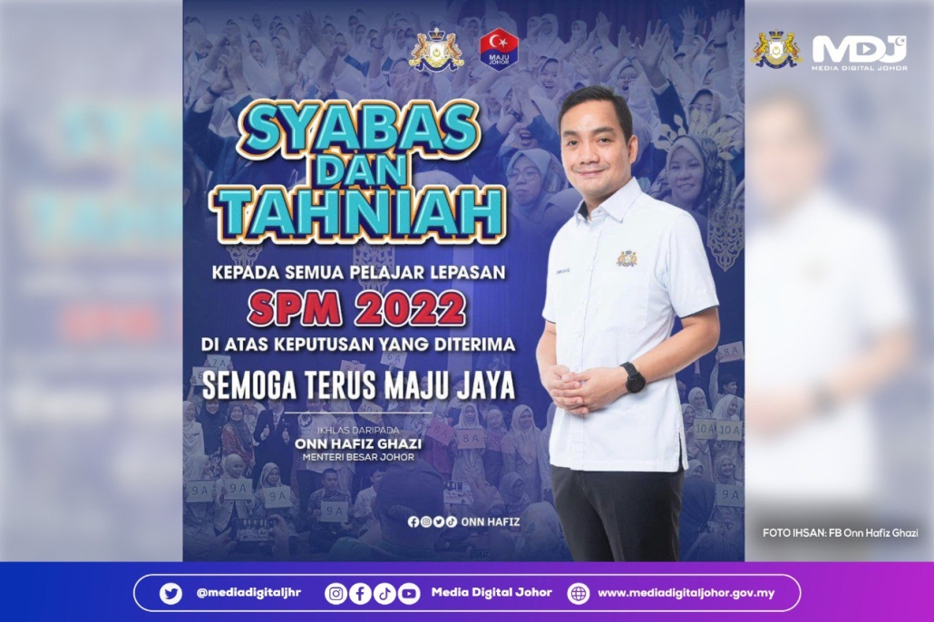Menteri Besar Johor, Datuk Onn Hafiz Ghazi mengucapkan tahniah kepada 42,795 calon Sijil Pelajaran Malaysia (SPM) Tahun 2022 Negeri Johor. | Foto ihsan Facebook Onn Hafiz Ghazi