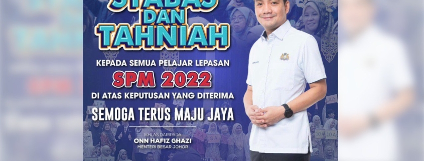 ISKANDAR PUTERI — Menteri Besar Johor, Datuk Onn Hafiz Ghazi mengucapkan tahniah kepada 42,795 calon Sijil Pelajaran Malaysia (SPM) Tahun 2022 Negeri Johor atas pencapaian amat membanggakan dalam peperiksaan berkenaan.