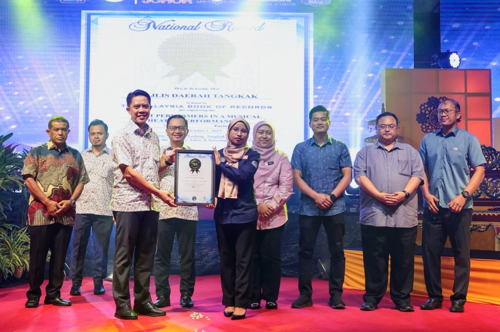 Pementasan teater muzikal Puteri Gunung Ledang sempena Amazing Tangkak Festival 2025 di Dataran Tangkak, semalam, mendapat pengiktirafan Malaysia Book of Records (MBOR) sebagai Penyertaan Pelakon Teramai Dalam Satu Pementasan Teater (Most Performers in a Musical Theatre Performance). | Foto MDJ Aisyah Mazalan