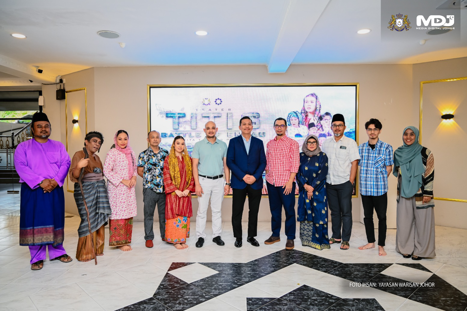Barisan pelakon teater Titis, Battle of Endau dengan penampilan khas pelakon, Azizah Mahzan. | Foto Yayasan Warisan Johor