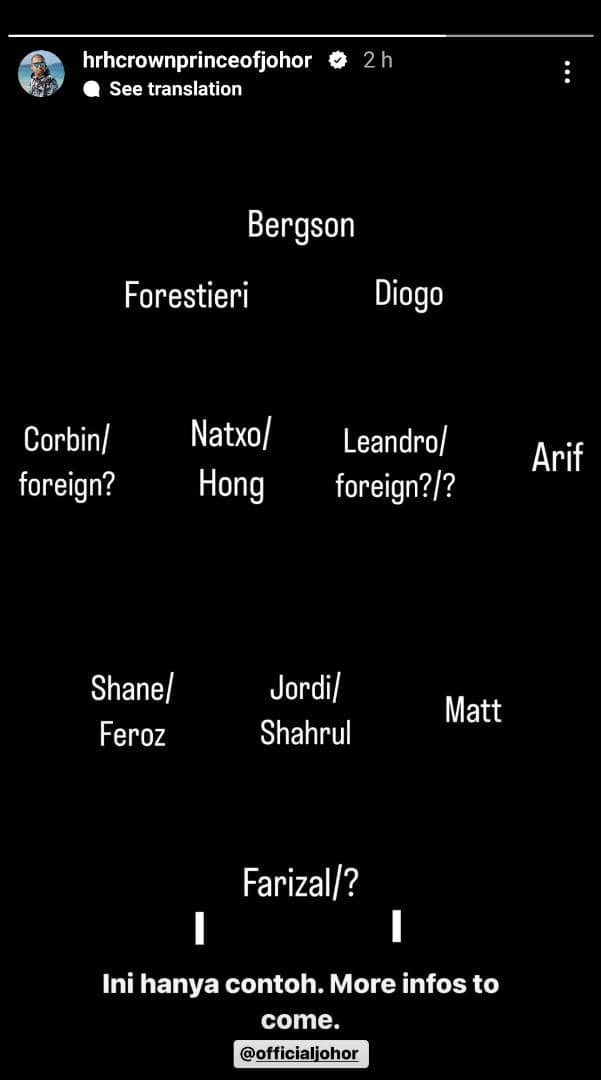 Siaran InstaStory itu sekali gus menghadirkan keterujaan kepada peminat dan penyokong Skuad Harimau Selatan untuk menantikan kejutan yang bakal diumumkan.
