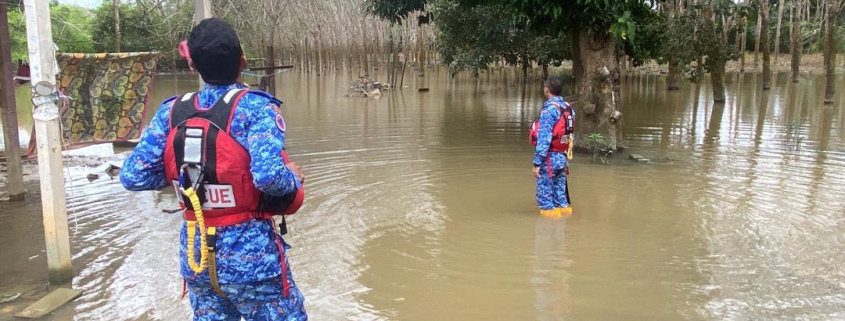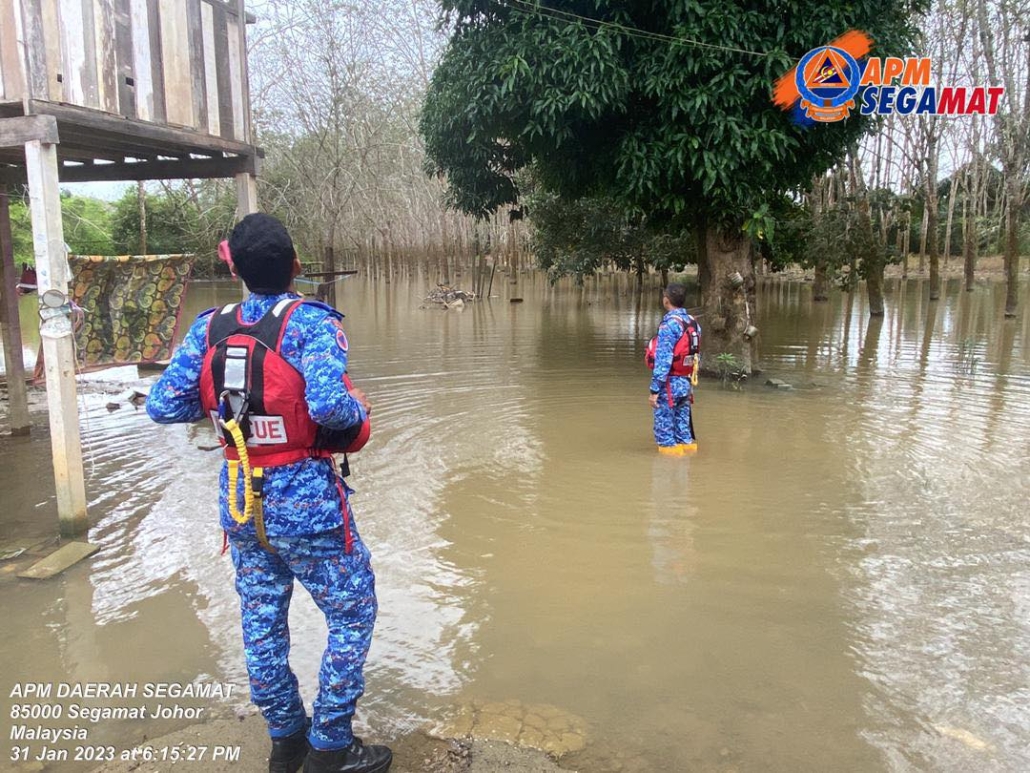 Pemantauan berteursan oleh sektretariat Jawatankuasa Pengurusan Bencana Daerah di kawasan dinaiki air di daerah yang terjejas | Sumber gambar Angkatan Pertahanan Awam Daerah Segamat.