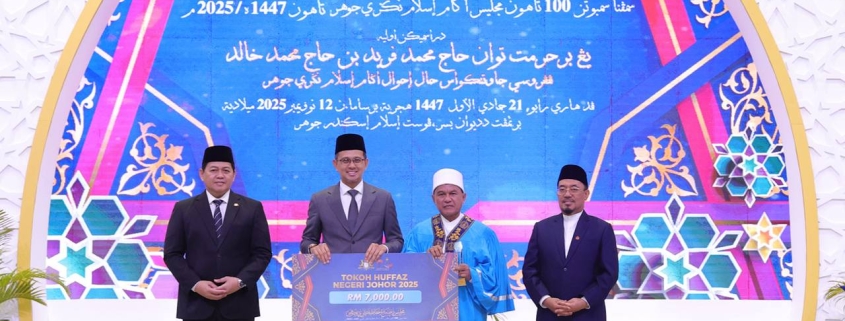 YB Tuan Haji Mohd Fared Mohd Khalid, Pengerusi Jawatankuasa Hal Ehwal Agama Islam Negeri Johor hadir merasmikan Majlis Ijtimak Huffaz Negeri Johor 2025 sempena Sambutan 100 Tahun Majlis Agama Islam Negeri Johor (MAINJ) di Pusat Islam Iskandar Johor. | Foto MDJ Aisyah Mazalan