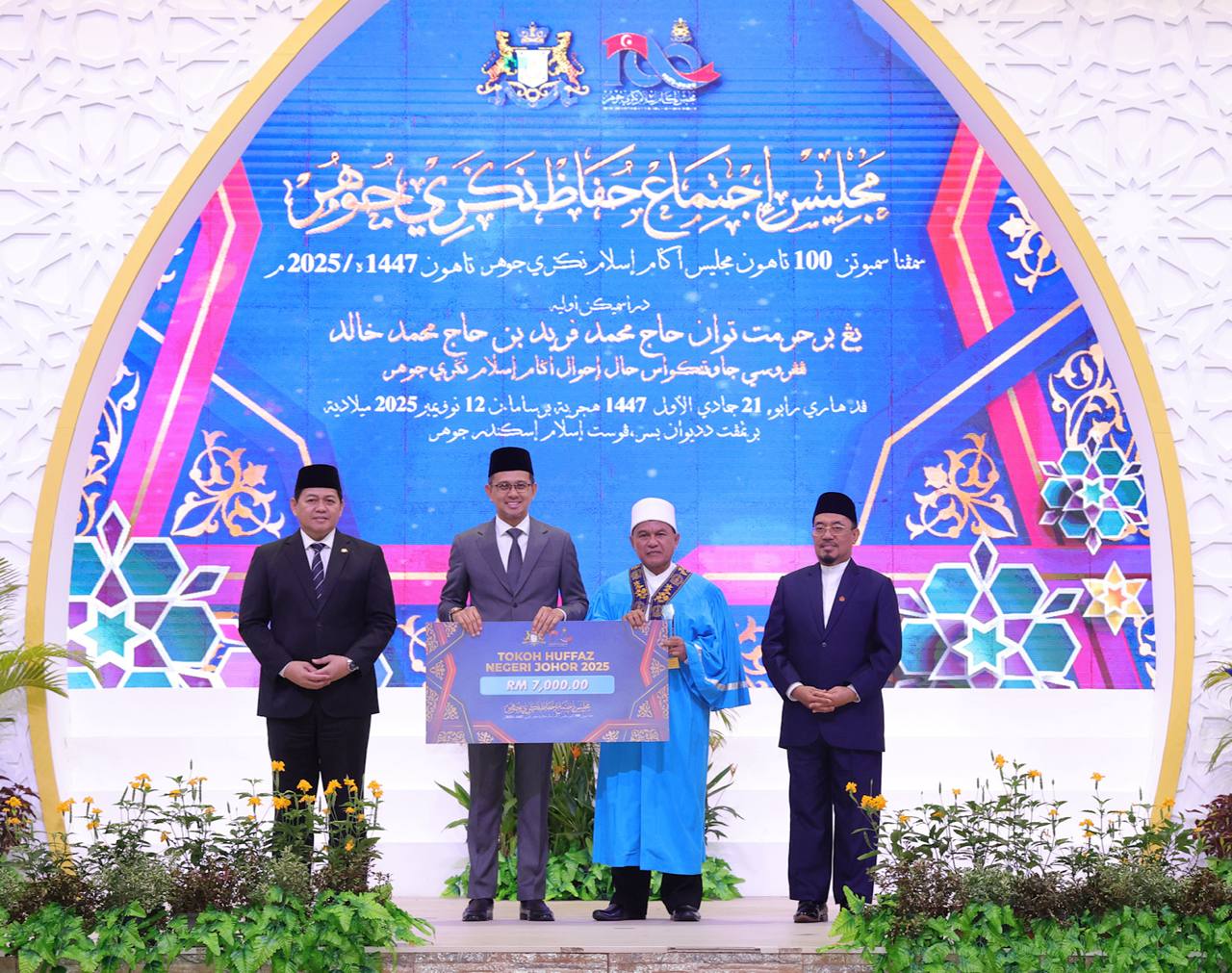 Terdahulu, YB Tuan Haji Mohd Fared Mohd Khalid, Pengerusi Jawatankuasa Hal Ehwal Agama Islam Negeri Johor hadir merasmikan Majlis Ijtimak Huffaz Negeri Johor 2025 sempena Sambutan 100 Tahun Majlis Agama Islam Negeri Johor (MAINJ) di Pusat Islam Iskandar Johor, hari ini.