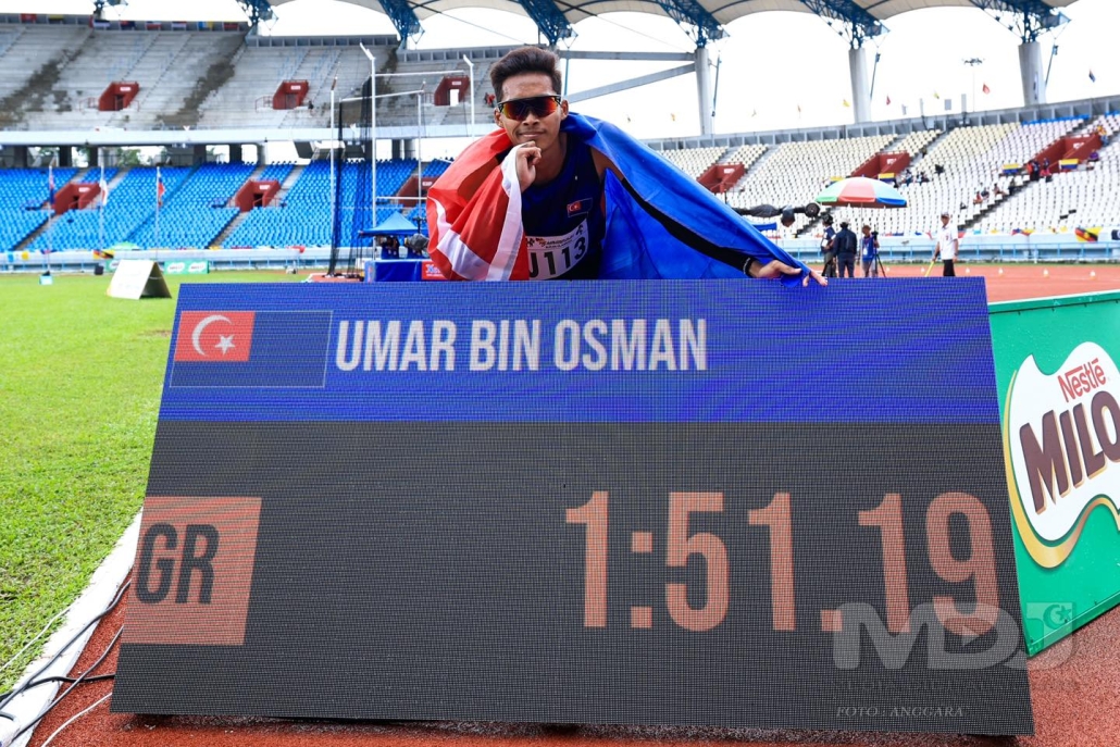 Stadium Sarawak menjadi saksi Umar Osman memecahkan rekod baharu sukan olahraga acara 800 meter lelaki dengan catatan masa 1:51.19 selepas 32 tahun rekod tersebut kekal.